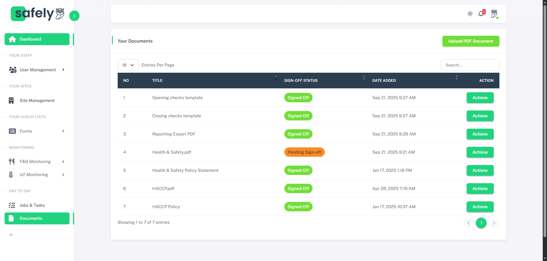 From hygiene inspection reports to public liability insurance and pest control records — all your key certifications are securely stored and searchable. Set expiry alerts and access documents instantly, helping you stay audit-ready and fully covered at all times.